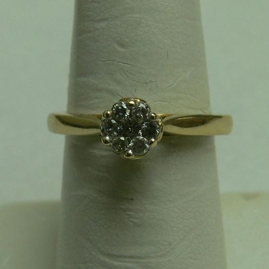 10K YELLOW GOLD LADIES CLUSTER RING W/ DIAMONDS SZ-7 3.1G