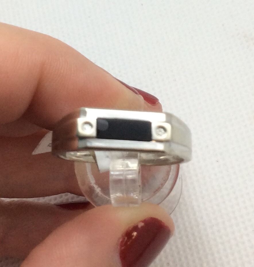 10kt white gold men’s band with onyx and 2 small diamonds siZe 10.25 3.5 gr mint 824678-1