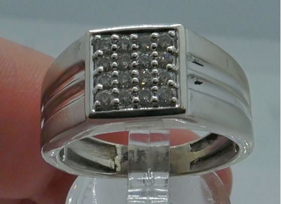 10kt white gold men's ring w diamonds; 6.8 grams; 0.75 carat of round diamonds; size 9.5. pre owned . very good condition. 840013-1.