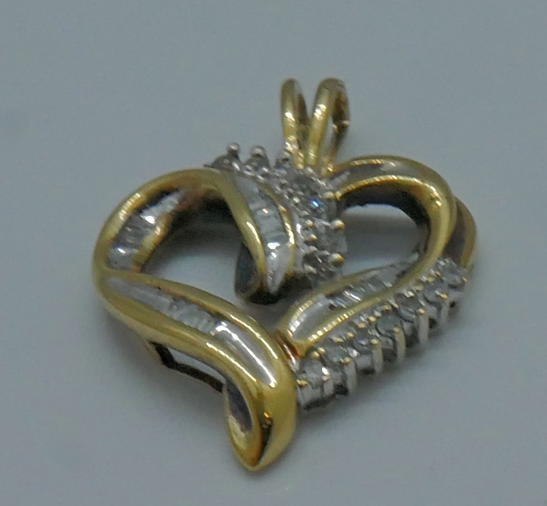 10kt yellow gold 2.6 grams diamond heart pendant 14 round .16 baguette diamonds 0.25 ctw 806514-1
