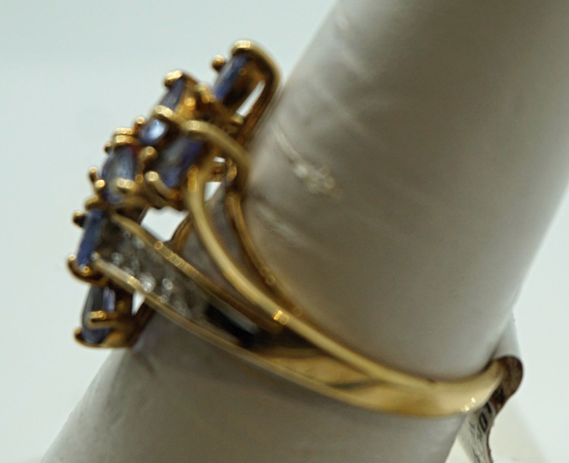10kt yellow gold ring size 7 2.8 gr total weight with 10 round diamonds and light purple stones .pre owned. Good condition. Ring can be seen or purchased from 9.30am until 6.30pm Monday thru Saturday at 2407 e monument st Baltimore md 21205. Phone number 4106750033. See my other listings for more jewelry. Item inventory store number 842479-1.