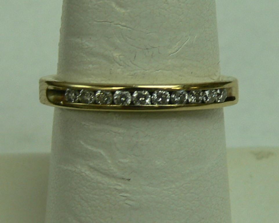 14K YELLOW GOLD DIAMOND BAND RING SZ-7 2.5G, 10 DIAMONDS APPROX .02 CARATS TOTAL DIAMOND WEIGHT.