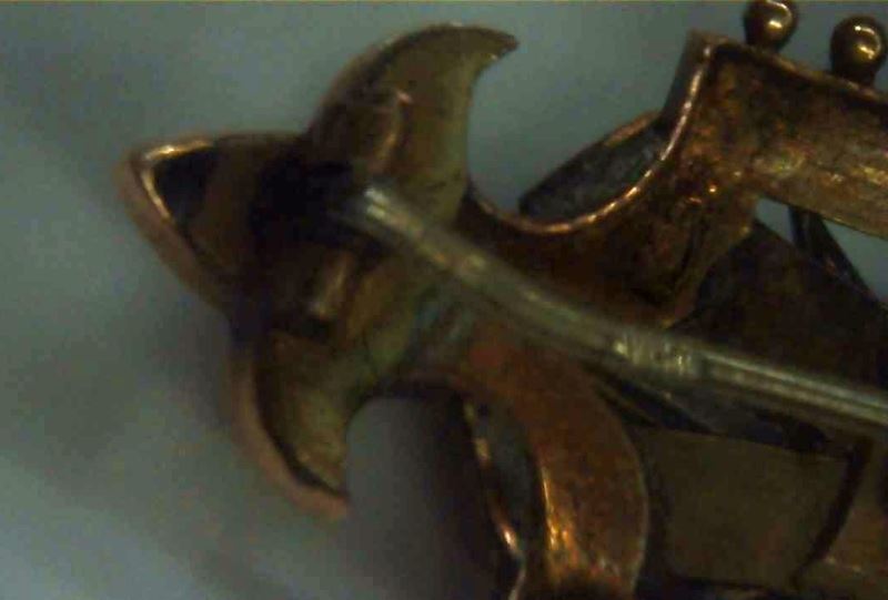14 KT YELLOW GOLD ANTIQUE PIN LATE 1800S WITH 17 FRENCH CUT DIAMONDS 6.5GR MINT CONDITION. PROBABLY 1800S. VICTORIAN ERA. HAS SOME ENAMEL WORK. THE CUT OF THE STONES I BELIEVE IT'S FRENCH CUT.