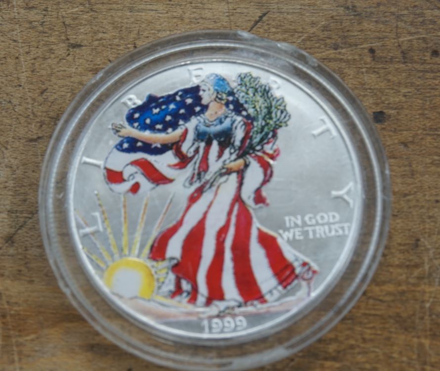 1999 1 oz. fine silver...one dollar painted silver eagle mint