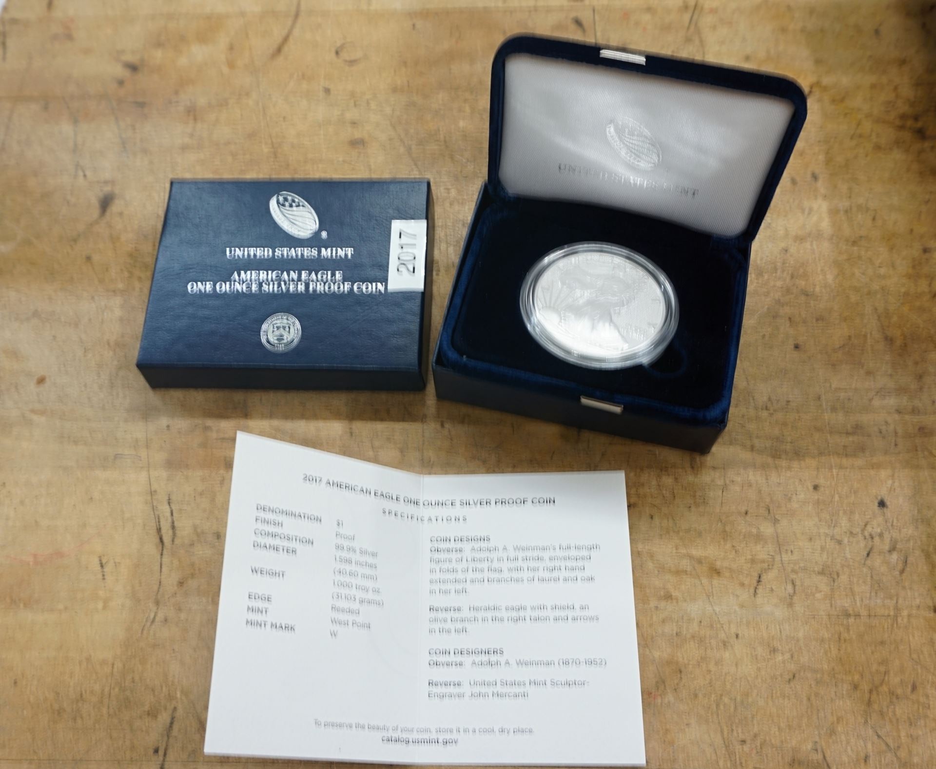 2017- U. S. MINT AMERICAN PROOF %99.9 SILVER EAGLE DOLLAR W BOX AND COA