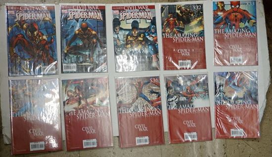 LOT 10 MARVEL COMICS THE AMAZING SPIDER MAN THE ROAD TO CIVIL WAR RATED A. VERY GOOD CONDITION. COLLECTIBLE. 529 530 531 532 533 534 535 536 537 538 .