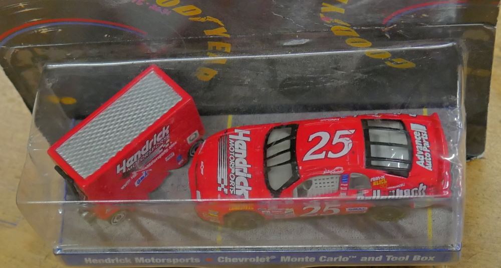 LOT 6 HOT WHEELS PRO RACING COLLECTIBLE CARS 43 CHEERIOS; A TEAM VAN GMC; 25 HENDRICK MOTORSPORTS ; 35 TABASCO ; 99 EXIDE ; AND HOT WHEELS CAR.