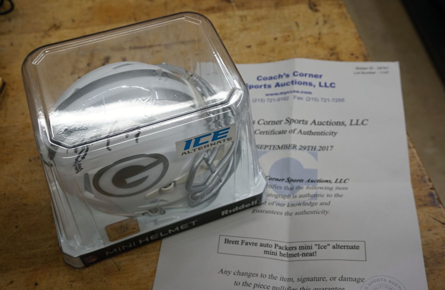 MINI ICE HELMET SIGNED BY BRETT FAVRE WITH COA MINT CONDITION. COLLECTIBLE