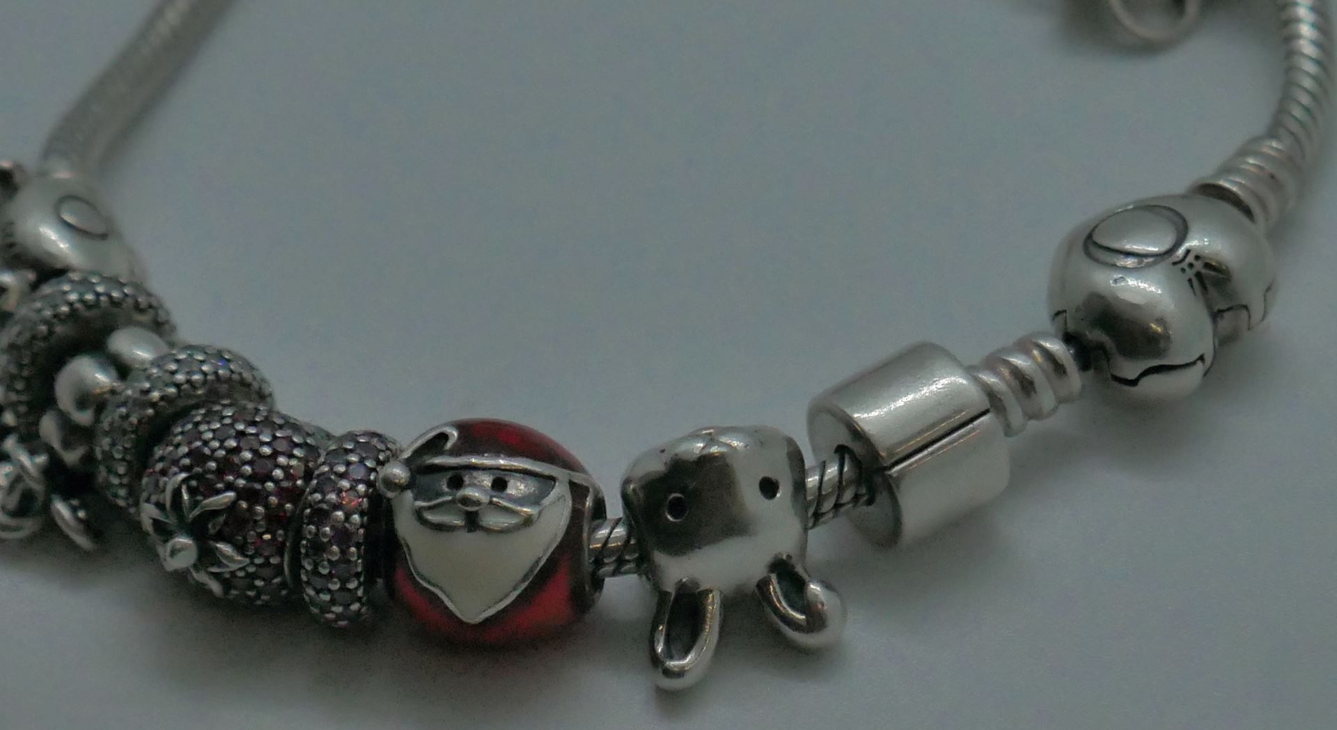 PANDORA STERLING SILVER BRACELET WITH 12 CHARMS 49.9 GRAMS PRE OWNED 851137-1