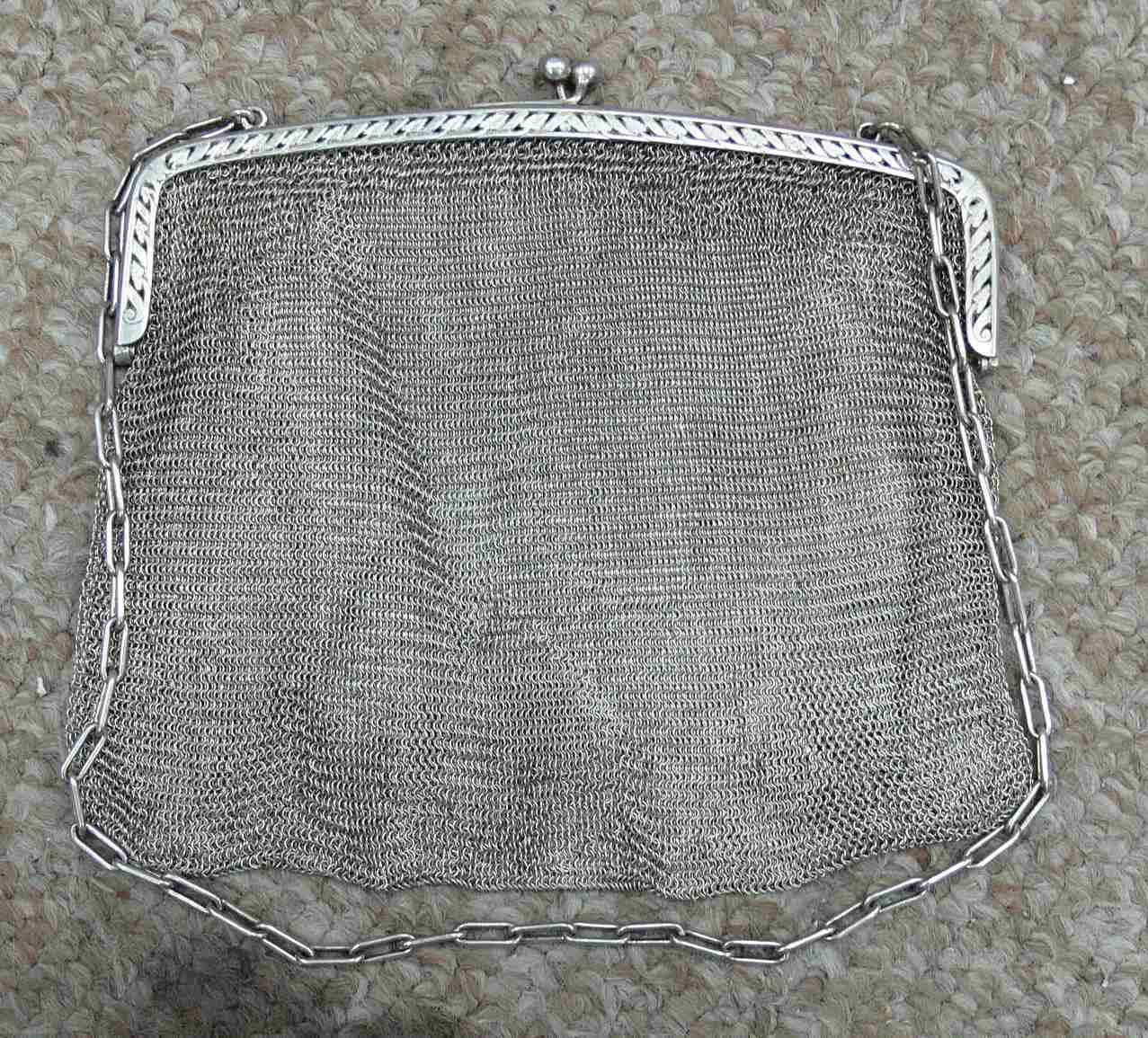 SILVER PURSE HANDBAG 286 GRAMS VINTAGE MARKED 800 AND IT HAS A CROWN HALLMARK. ONE SMALL STRETCH MARK ON IT. MEASURES 7" X 6.5". THE BOTTOM IF STRETCHED OUT MEASURES 12". FROM CENTER OF PURSE TO TOP OF STRAP IS 9.5". NOT SURE HOW OLD THE SILVER PURSE IS.