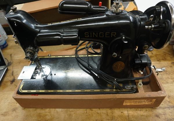 The Singer Manufacturing and CO Sewing Machine model #AF148399. Nice collectible vintage item. I'm not sure what the model # is.Comes with case. Pre-owned. The machine missing bobbin. The case missing handle. Please look at all the pictures. Motor runs fine.