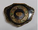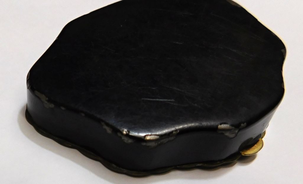 VINTAGE ENAMELED BLACK FLORAL MAKEUP COMPACT CASE WITH ENGRAVING ON TOP "H B" FROM WHAT I CAN MAKE OUT