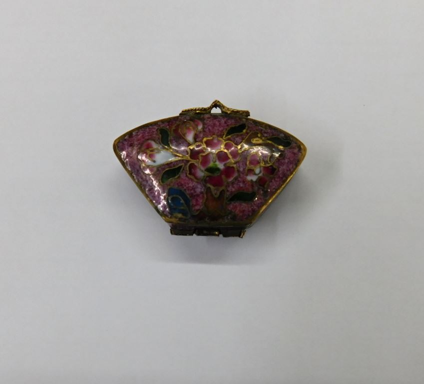 VINTAGE PURPLE FLORAL ENAMELED CLOISONNE MINI PILL BOX BRASS 1.5" 18.6G